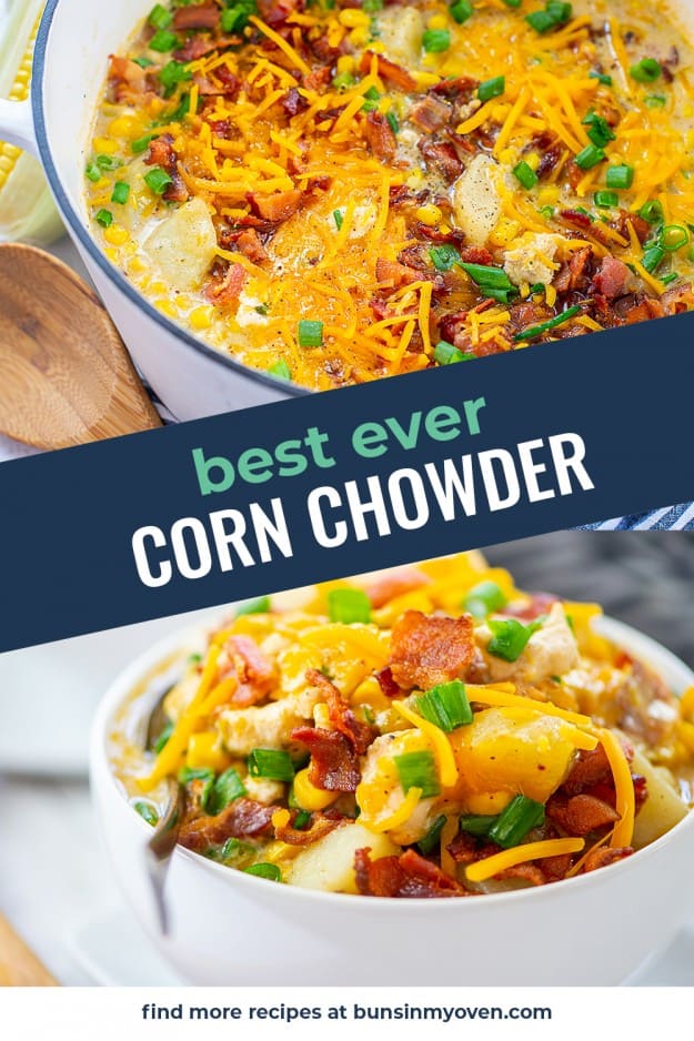This CHICKEN CORN CHOWDER recipe is hearty and filling, made with fresh sweet corn, chunks of chicken, and plenty of potatoes and bacon. This is the ultimate summer soup recipe!